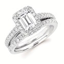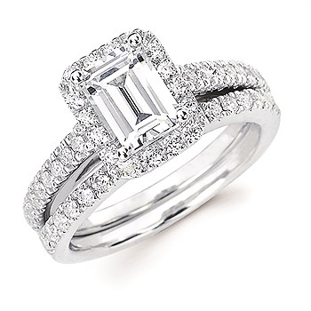 Halo Bridal: 3/8 Ctw. Diamond Halo Semi Mount Available For 1-1/4 Ct. Emerald Cut Center Diamond In 14K Gold