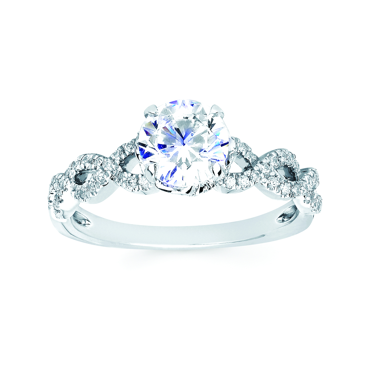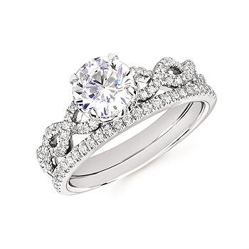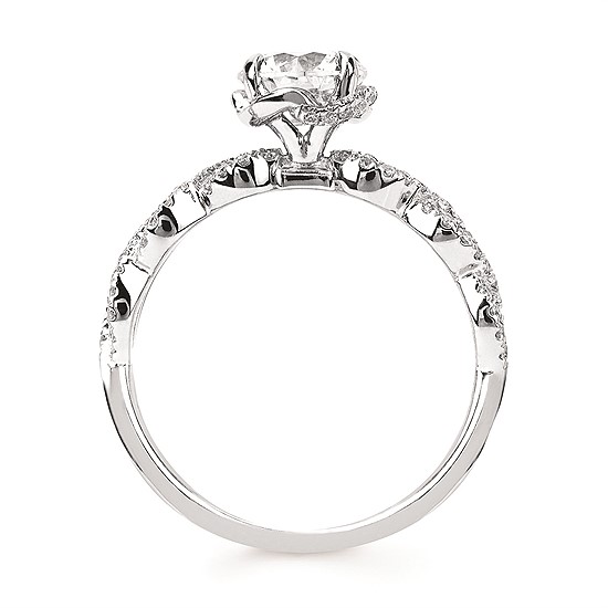 Engagement Ring Halo Bridal: 1/4 Ctw. Diamond Semi Mount shown with 1 Ct. Round Center Diamond in 14K Gold