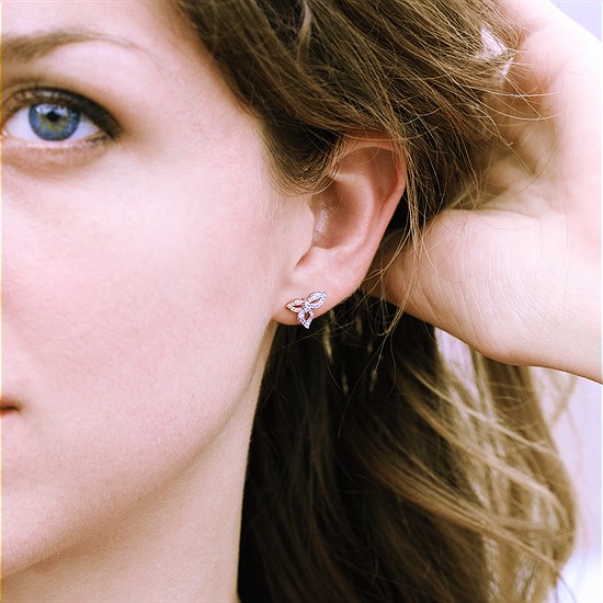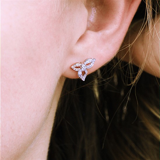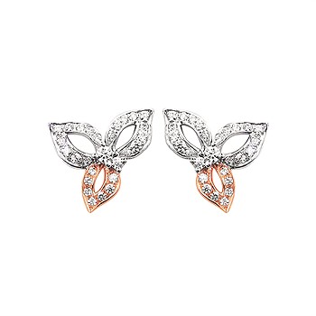 1/5 Ctw. Diamond Two Tone Floral Earrings In 14 K Gold
