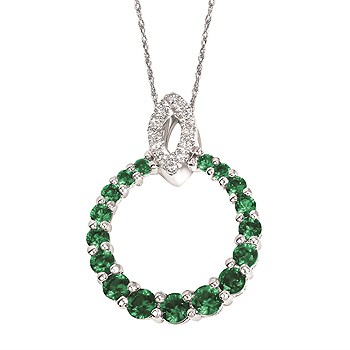 1 1/3 Tgw. Diamond & Emerald Pendant In 14K Gold With 18" Chain